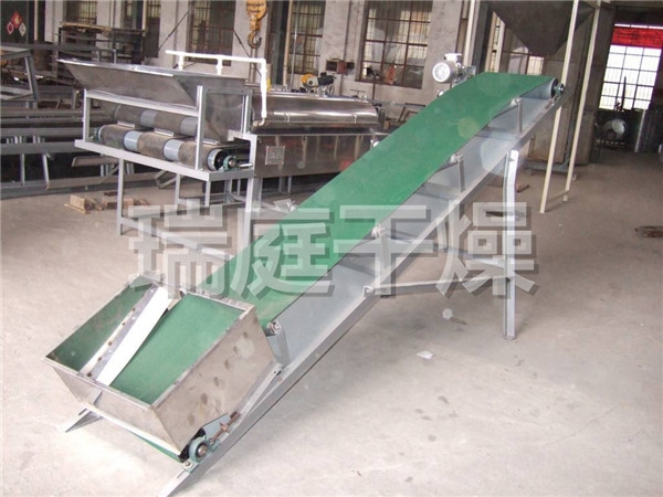带挡板、裙边式皮带输送机是在输送带上增设提升挡板、裙边等附件,用来程度或提升输送散状物料。广泛运用于化工、食品、制药等行业,可以用来向反应釜、包装机料仓的投料,也可以用在各种机器之间物料的连接输送。其输送量高,结构简单,维修方便,成本小,功耗低,又不会损坏被输送物体,是传统的螺旋输送机,斗式提升机的更新替换产品。